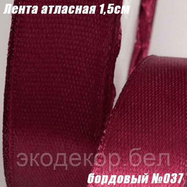 Лента атласная 1,5см. Бордовый №037. Для оформления элементов декора, упаковки праздничных подарков и сувенирной продукции.