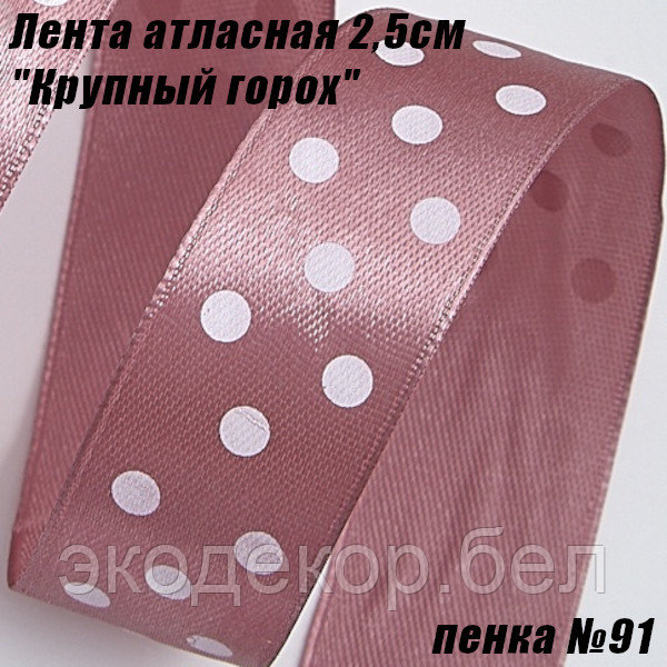 Лента атласная 2,5см "Крупный горох" (22,86м). Пенка №91.