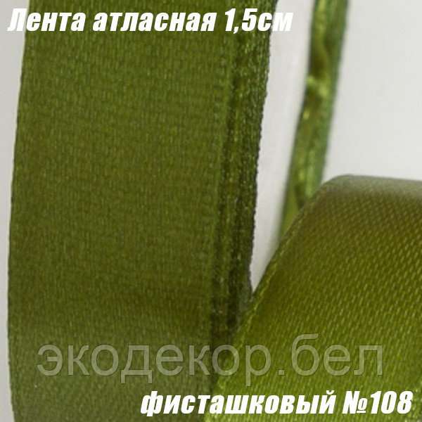 Лента атласная 1,5см (22,86м). Фисташковый №108