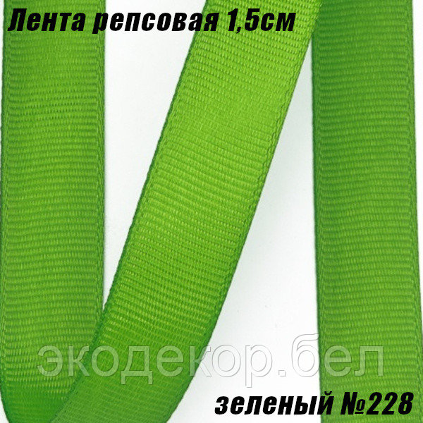 Лента репсовая 1,5см (18,29м). Зеленый №228.